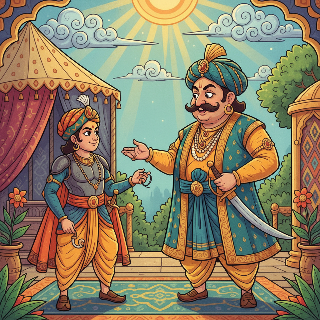 One day, a powerful general named Afzal Khan plotted to capture Shivaji by trickery. But Shivaji was too clever!
