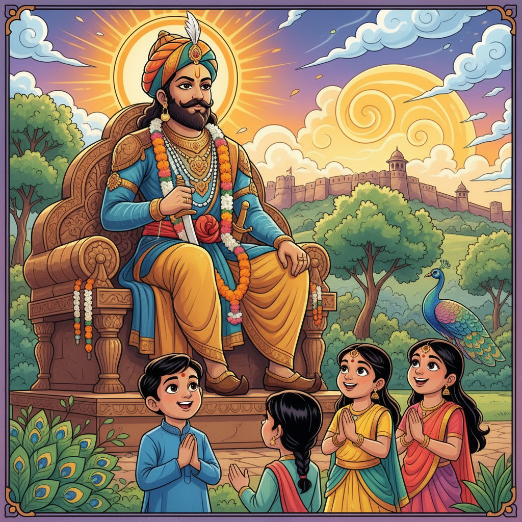 Namaste, little friends! Today, we journey back in time to meet a very special hero, a lion-hearted king known as Chhatrapati Shivaji Maharaj!